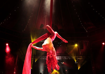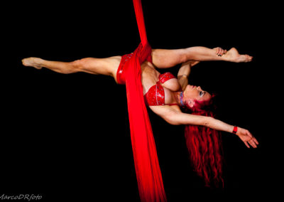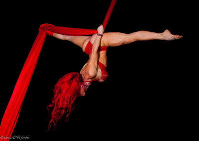 Única pieza de un material específico que doblada a la mitad y anclada con un sistema de sujeción al punto de anclaje permite al artista suspendido en el aire ejecutar: subidas, figuras, transiciones, arrojes, swing, valiéndose de estos elementos para crear un acto artístico.
