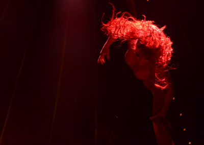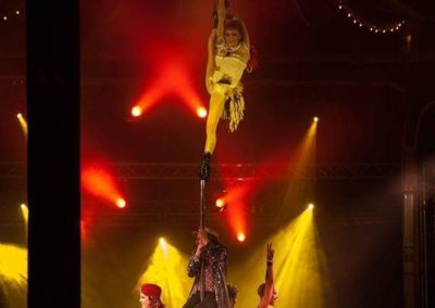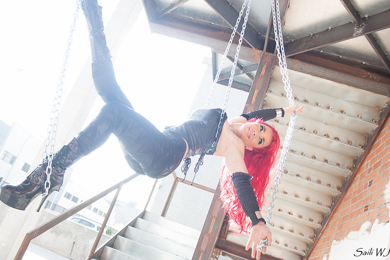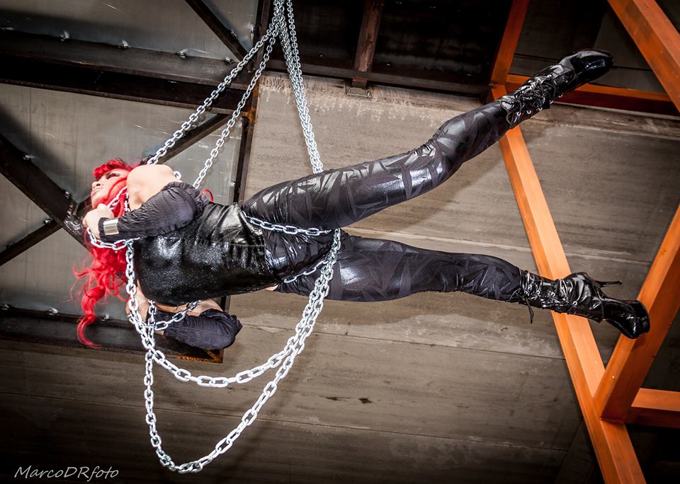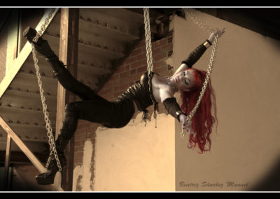 Cadenas dobles con 3 gotas dan mucho juego para la creación artística; requiere de un acto de profunda exploración e investigación ya que es un aparato aéreo de poca difusión, a pesar de lo sumamente interesante, sugerente y único que resulta el trabajo sobre este acero frío duro y flexible a la vez.
