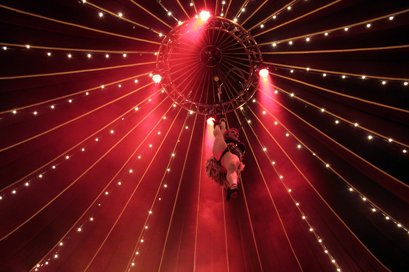 Es una forma de arte escénico que consiste en un aparato circular suspendido en el aire por medio de sus respectivos puntos de anclaje. El artista podrá realizar diferentes acrobacias aéreas apelando a figuras de fuerza, de flexibilidad o swing; utilizándolo en forma pendular, circular y por supuesto el tan maravilloso giro sobre el eje.