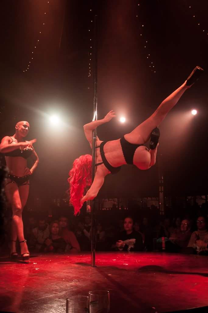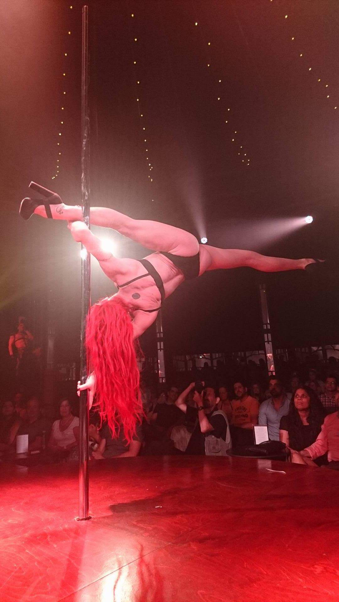 Consiste en una barra vertical firmemente anclada pudiendo ser usada en su modo estatico o giratorio permitiendo realizar un acto artistico donde se combina la danza, flexibilidad, tecnica y fortaleza fisica.